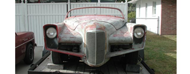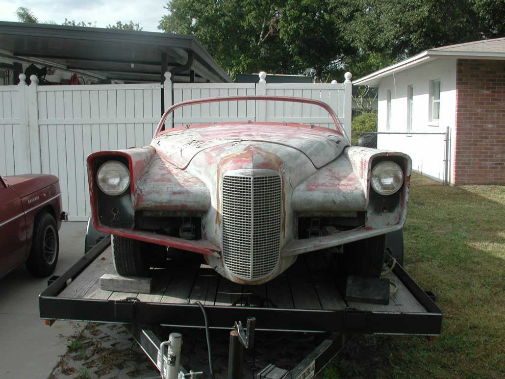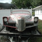 Rik Hoving actually passed me the information on the car and as I recall, I was the high bidder at $294. Transportation back to Tampa was $500, and part of the front right fender disintegrated during the trip. But it made it without much more damage. I love the front end design of the car. The car has a certain appeal – if you kind of unfocus your eyes a bit. I think it was inspired by the design of Brooks Steven “Valykyrie” of which I posted a picture below. The interior was nicely done, the front end had appeal, but toward the back…not so much (politely). It was based on a Stude chassis, some Stude interior parts, and 6 cylinder Stude Flathead.