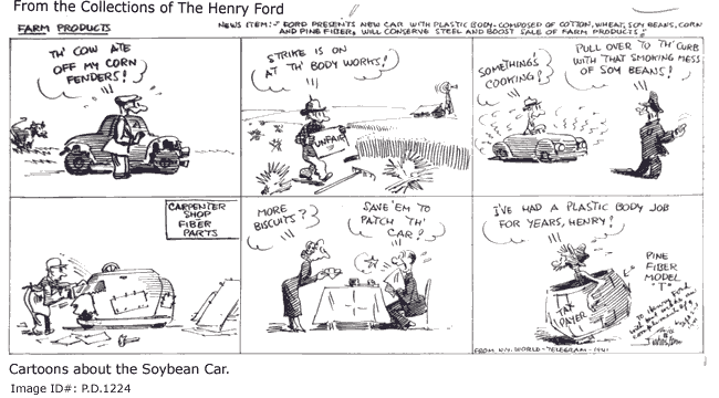 So….as a professor down here in Tampa, Florida…this was the lesson for the day – the world’s first plastic car. Hope you enjoy the articles and thanks so much to the Bensen Ford Research Center for sharing the information with us about this car.