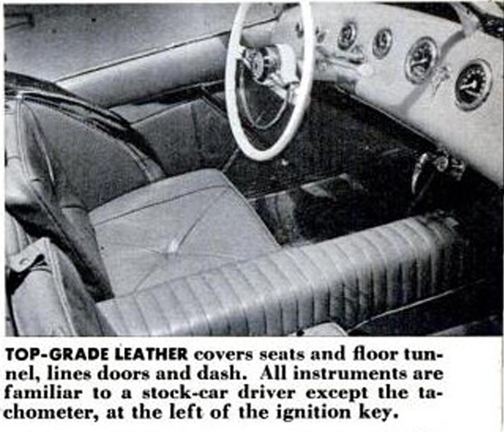 Its power plant is a six-cylinder Henry J engine souped up, with high compression head, three carburetors in line, a modified camshaft and dual exhausts, to provide better than 100 horsepower. The “161” in its name is for piston displacement. Compression ratio is 8:1.