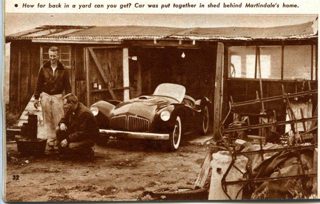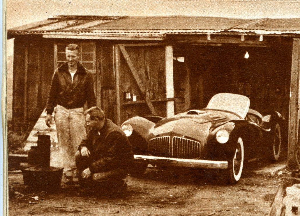 Like many young men at the time, both Mangels and Martindale were car guys and wanted “in” on the budding sports car scene in Southern California. Late in 1952 they began talking to fiberglass car companies in the Los Angeles area – Glasspar, Victress, Woodill, Allied, and