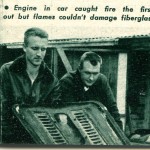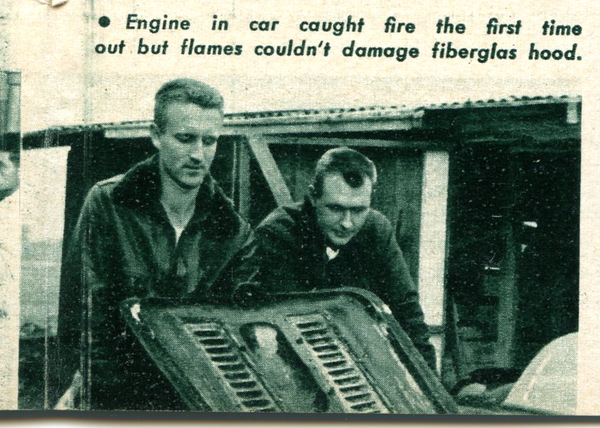 The car was ready in March, 1953, and testing and modifications were finished in early April. So then, all that’s left to do is go racing. The first driver was Warren Gerdes, Production Manager for Glasspar G2 automobiles and race car driver and sports car enthusiast whose racing experience started back in the 1940s. On his first race at Pebble Beach (April, 1953), Gerdes was in first place the entire race until the last lap when a carb leak caught the engine on fire. Here’s a short review of what was said by John Cristy of the Los Angeles Examiner in his column “Wheelspin”: