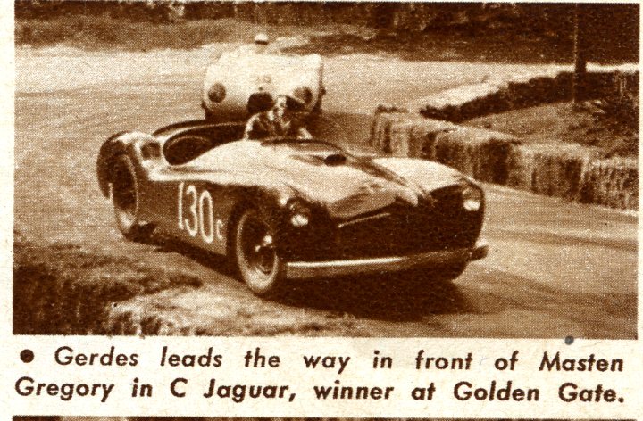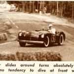 The C-T engine was taken out of a track roadster and dumped into the road machine two days before the race. Set up for alcohol fuel, the thing had to be changed over for gasoline, which was where the trouble came in. One of the carburetors loaded up on the last lap of the novice event and dumped gas onto the exhaust. The resulting fire was spectacular, but not as spectacular as the way Gerdes had led the pack from the outset. In the actual running, the car did have one fault – too much steam for the gearing. The result was the car got “squirrelly” coming off the turns, leaving a black streak of rubber on every straight. Even with this, the car was able to pick off C-type Jaguars with little or no trouble. ‘Nuff Said?”