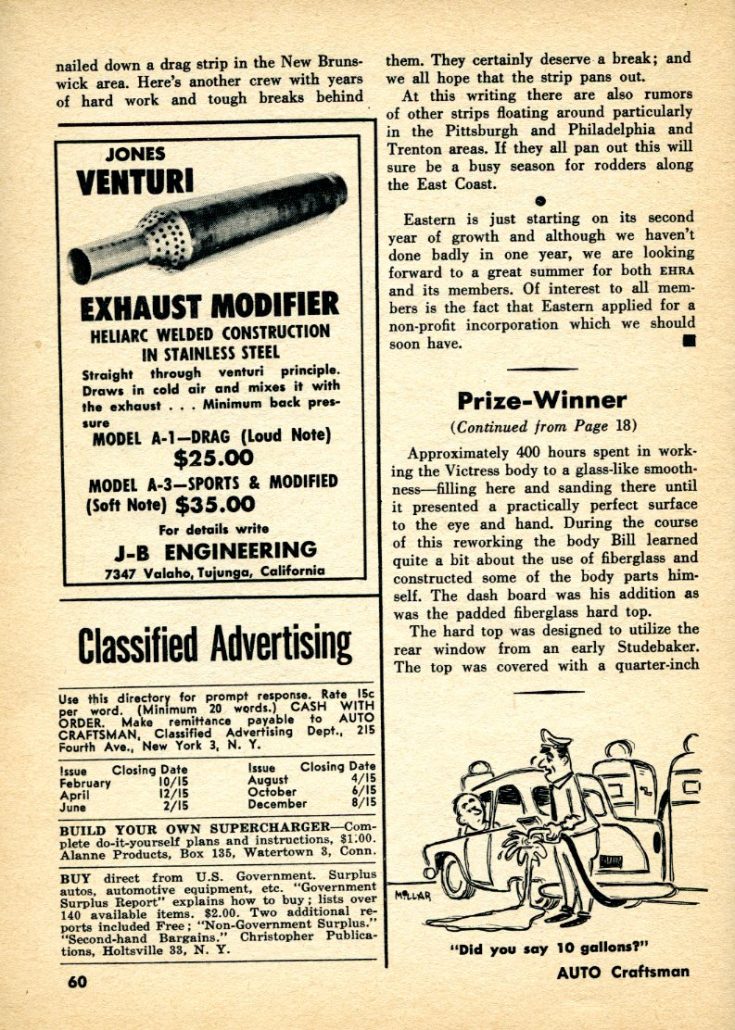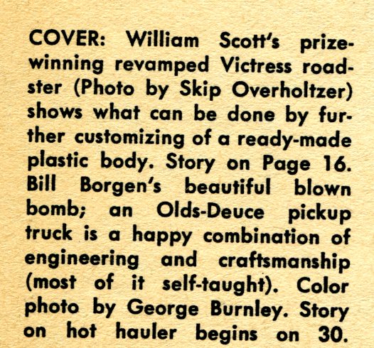 After reviewing an article sent in by Tony St. Clair, researcher and magazine collector extraordinaire, I think we have a winner. According to a 1958 issue of “Auto Craftsman”, William Scott of Pennsylvania put together a beautiful Victress S1A and went out to win 25 first place trophies in just over a year.