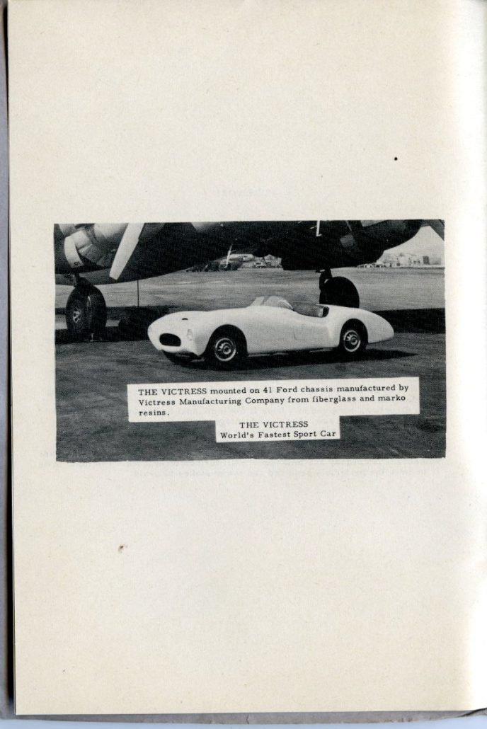 Victress had just been awarded that special title in August ’53 at Speed Week in Bonneville – months before this booklet debuted in the Fall of ’53. Quite an accomplishment for the design and build of this special sports car body 🙂