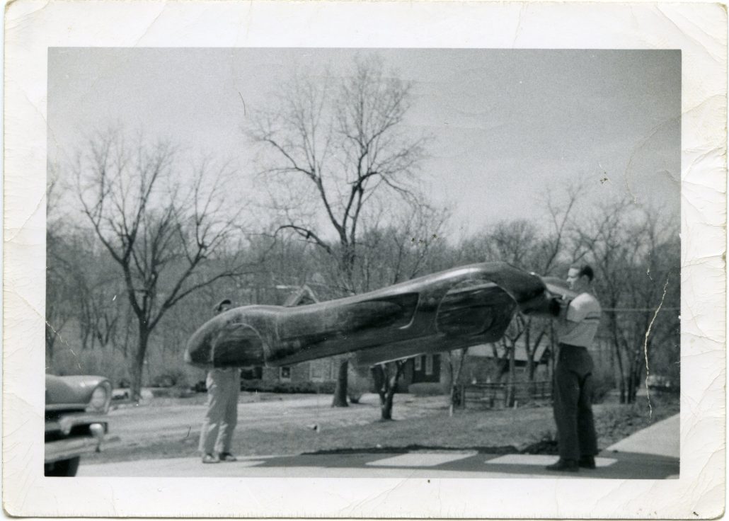 He also remembered buying resin in gallon containers to help make the body. “You couldn’t buy a drum of resin at that time – I had empty cans stacked all over the place”! The “place” was his inlaws garage who were kind enough to let him build the body there in 1958.