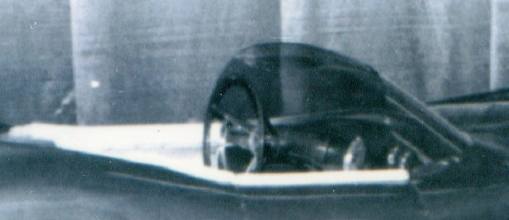 The first design Dick wanted to use was based on a 300 SL Mercedes and a Corvette. He liked the low slung chassis and smooth flowing long lines of both cars. He also wanted to French the headlights. At first, the rear of the body trailed off smoothly and this is how he initially molded the body of the car. But Dick liked fins – heck everyone liked fins in the late 1950’s, and his car would have them – based on the design of the 1957 Chevrolet. He added the fins after the body was molded in the late summer of 1958.