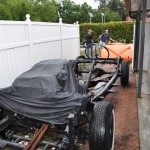 First we had to off-load the Maverick body from the trailer – then spin it around facing the correct direction. Next we had to roll out the chassis and prep it to receive the body. Finally, we did our best to stress and strain and heave the front portion of the body over the drivetrain and mate it near the front mounting points.