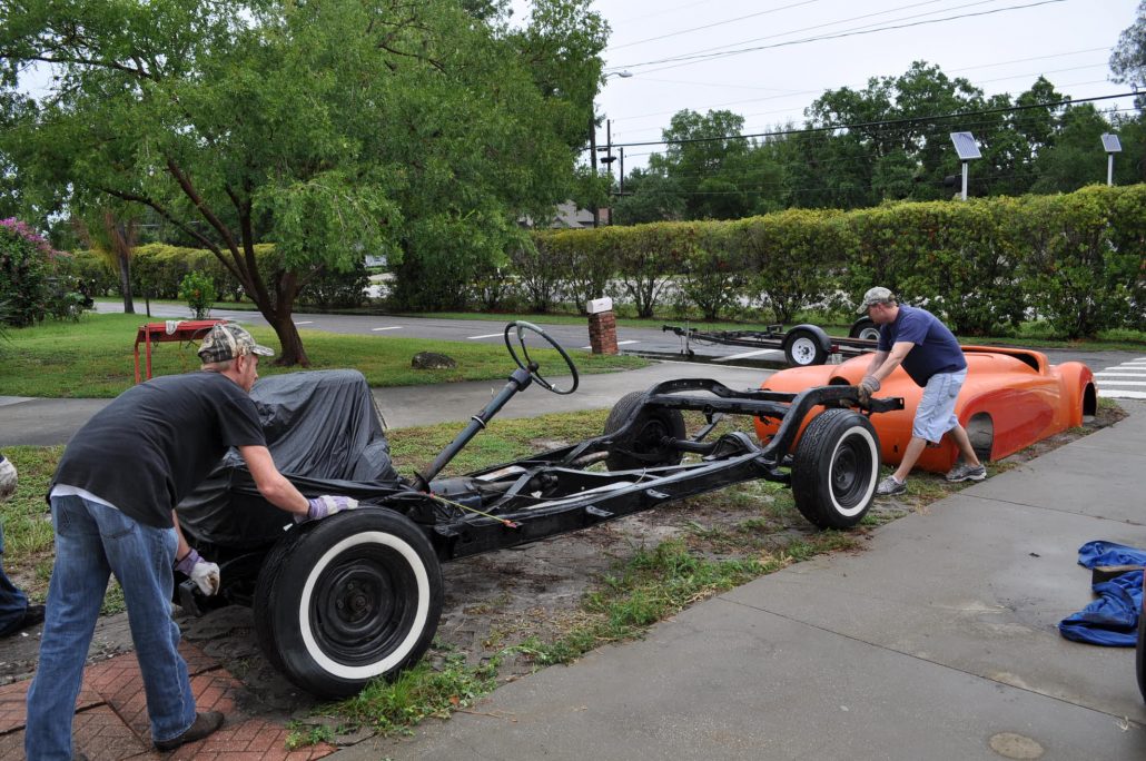 Now we just had to figure out how to get the body – on the chassis. This is a very heavy body, gang!