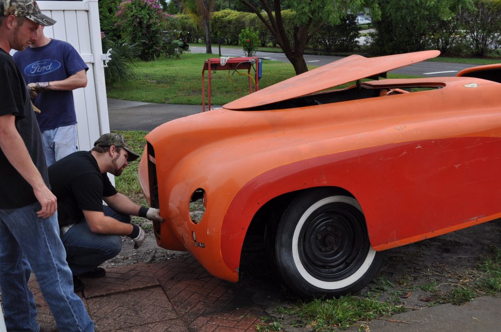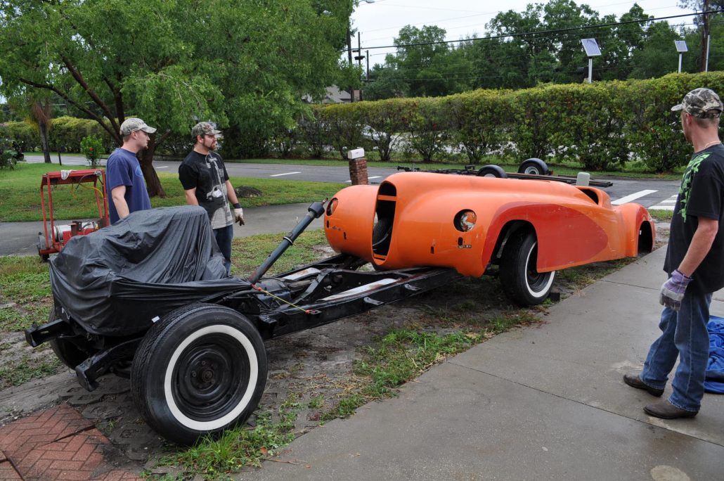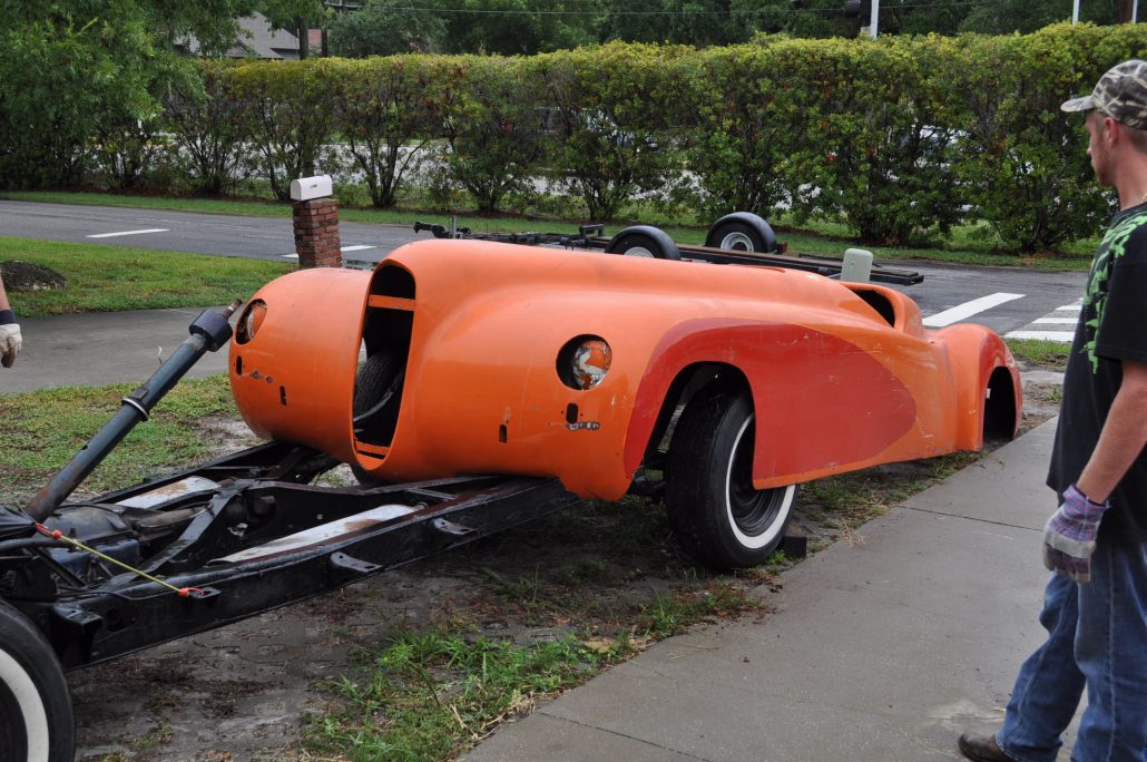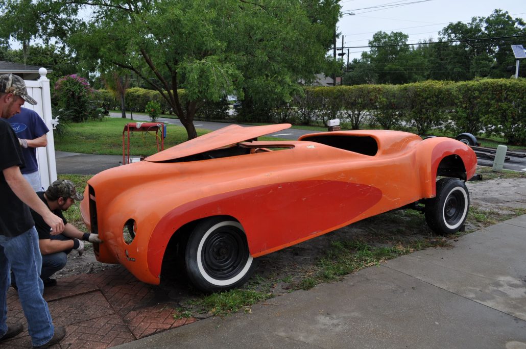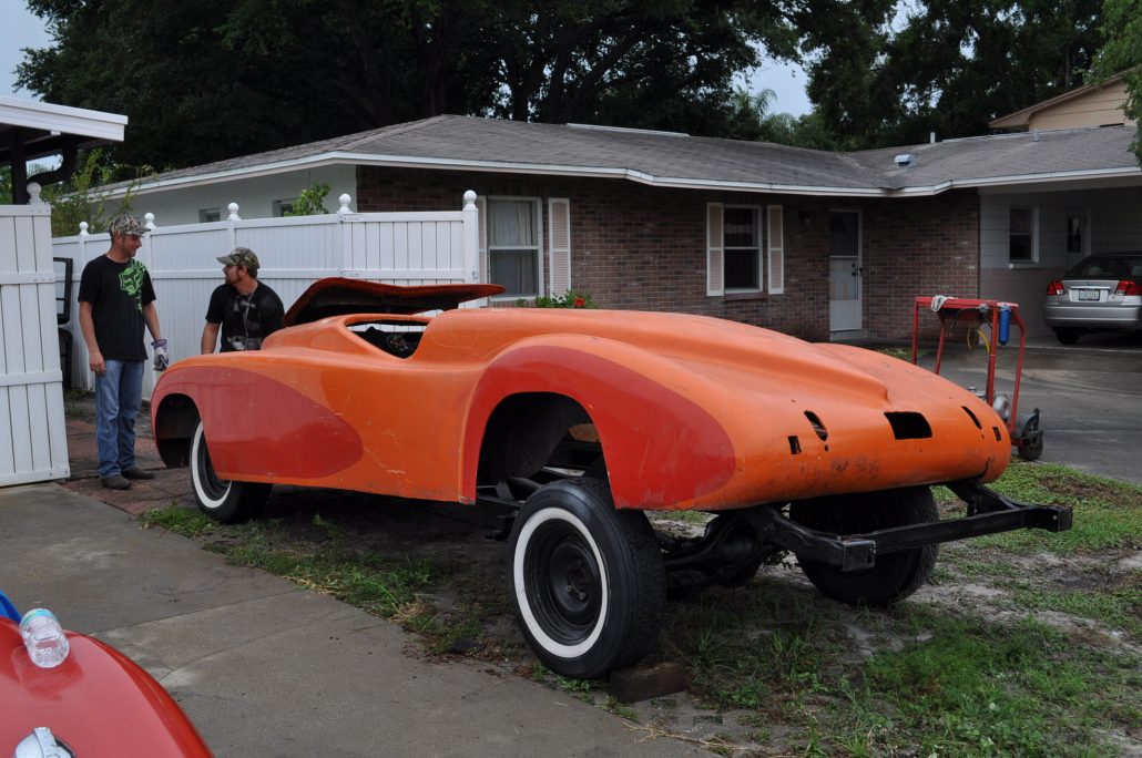 When Rick and I initially left the barn where the Maverick had laid disassembled, we were amazed at what we had found. One big, giant, glamorous, hunk of a fiberglass sports car. And more “orange” than any “orange” I’ve seen in Florida – and that’s saying something gang!
