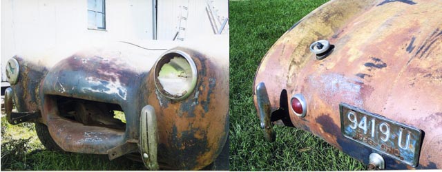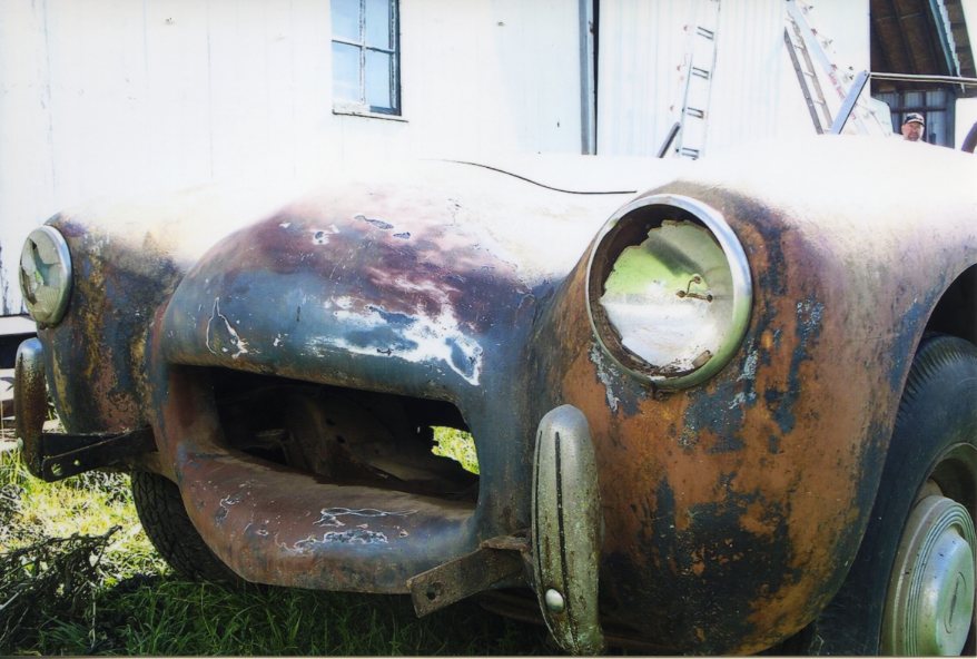 Interesting car here gang. It looks like it hasn’t been modified since the 1950’s. Apparently it lost its front Grill and they did a sort of “Woodill Wildfire” front nose. Looks like it would accept one of the Nash grilles that some G2’s have pretty well.
