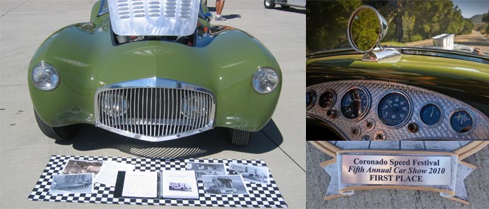 The first time the car was shown was on September 25th, 2010, at the Coronado Speed Festival on Coronado Island, in San Diego California. As you would expect, response was overwhelming to the car. Rodney tells me it was hard to get pictures of it without having people in the way.