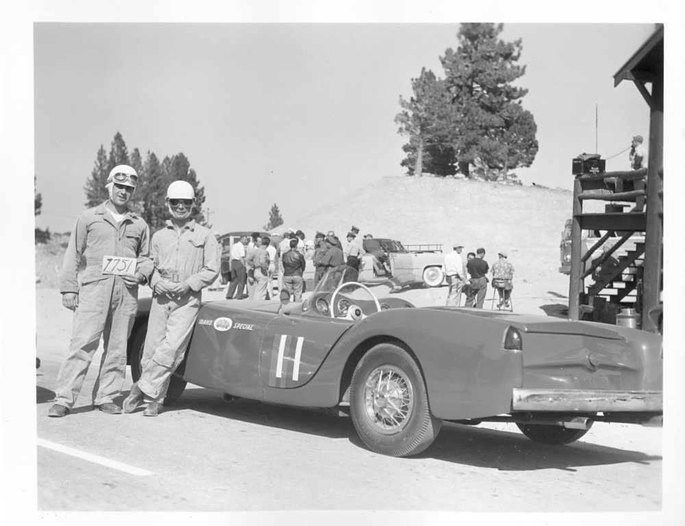 In the mid-fifties in Palo Alto, we lived next door to an engineer for Ames Corp. named Roger Sherman. Pop was building a Glasspar at the time and Roger was building a special of his own design. Roger worked at Ames for a fellow named Cloyd Gray who was very active in the newly formed SCCA and was its Chief Steward for several years. Cloyd had a Jag roadster, I remember it being an XK 140, but it could have been 120. It was a medium blue color and it’s number was 34. He had the car at our house many times visiting Dad and Cloyd and looking over their projects. He ran the Jag at a couple of the Pebble Beach races and at other CA tracks and was known to many as not only an SCCA executive but a very competitive racer.