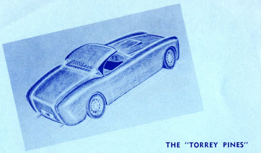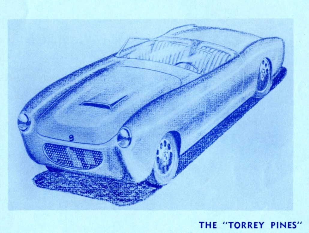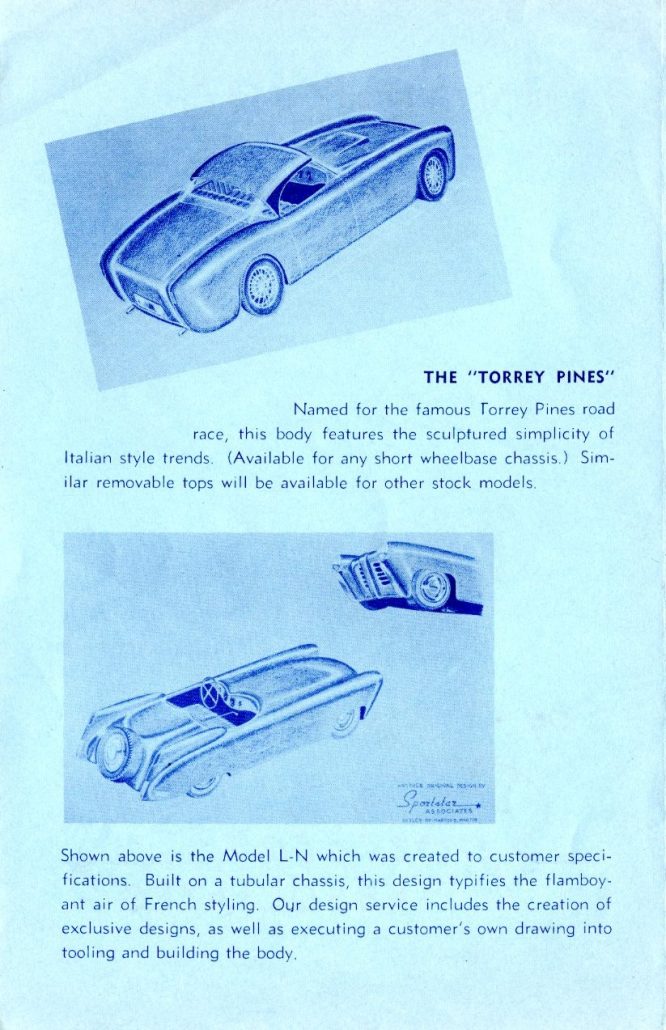 The Torrey Pines: Named for the famous Torrey Pines road race, this body features the sculptured simplicity of Italian style trends. (Available for any short wheelbase chassis.) Similar removable tops will be available for other stock models.