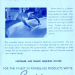 Another question arises and that’s how brochures of the company came to be when we’ve found no advertising where a person could “write away” and request a brochure. But as I noted in the beginning of this story, there are many riddles left in the early days of fiberglass – riddles that each of you can help solve with research and a bit of luck.