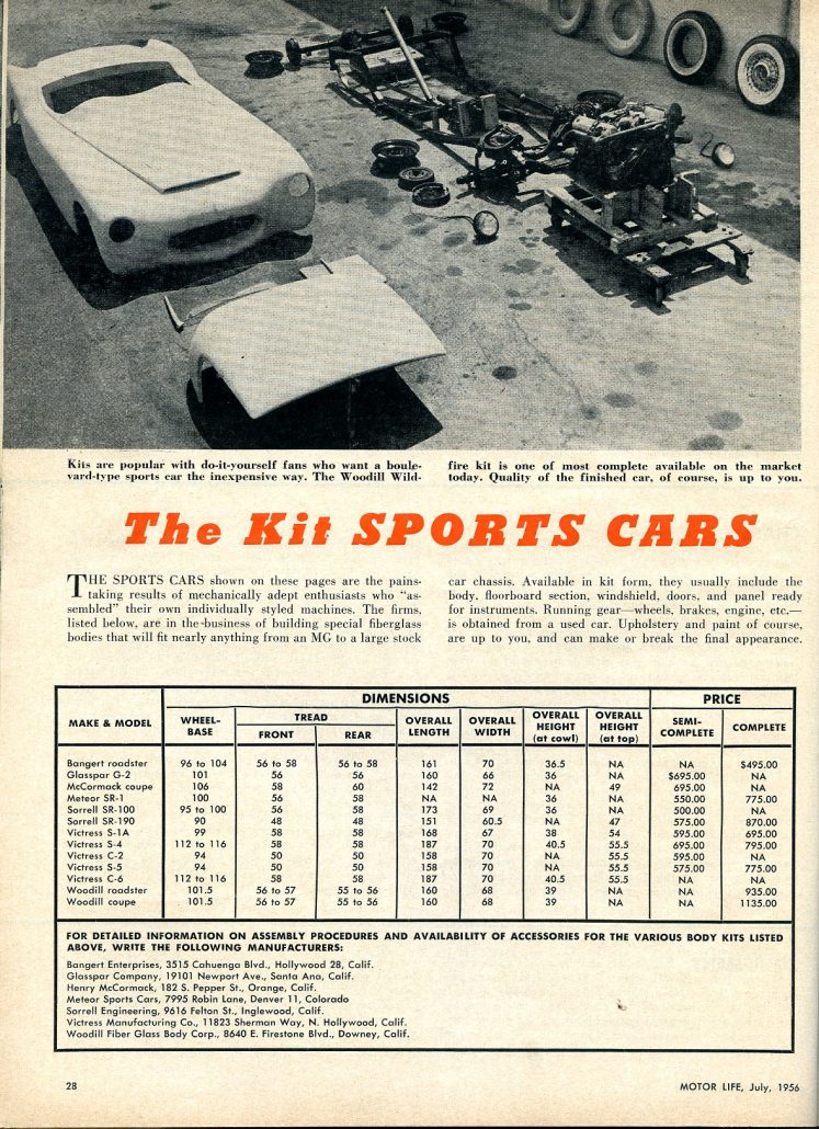 Things were about to change – and we would enter what Rick D’Louhy and I call “Generation 2” of early fiberglass cars which lasted approximately from 1956 thru 1970. Let’s take a look what Motor Life had to say about building your own fiberglass sports car back in July 1956: