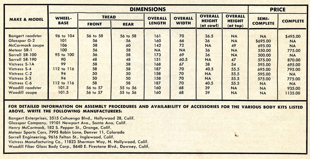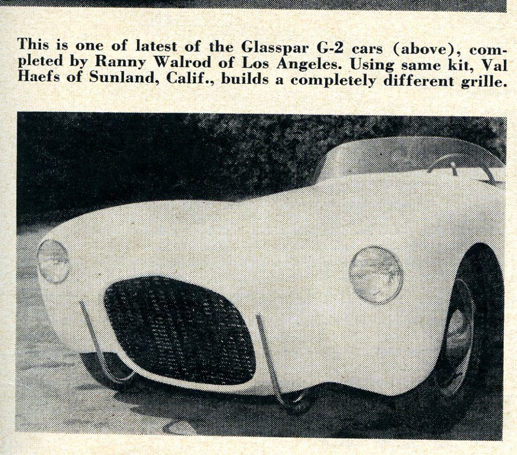 Note that both Glasspar G2’s shown in the article appear with names of the owners and builders – Ranny Walrod of Los Angeles and Val Haefs of Sunland – both of California. Anyone out there want to help find these guys or their families? This is how I usually begin the research process that leads to uncovering great information and often some unknown cars. And…one or two of you might own these exact cars today – and be missing their heritage (until now….)