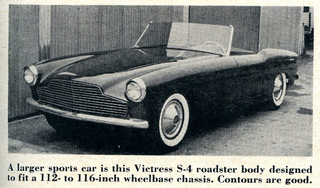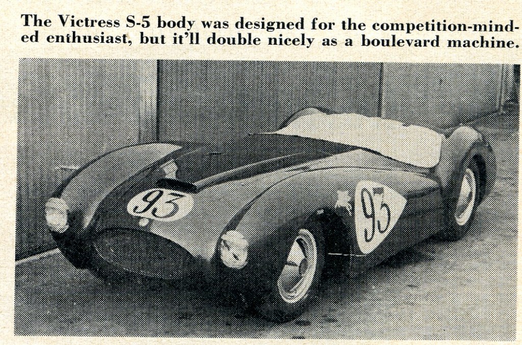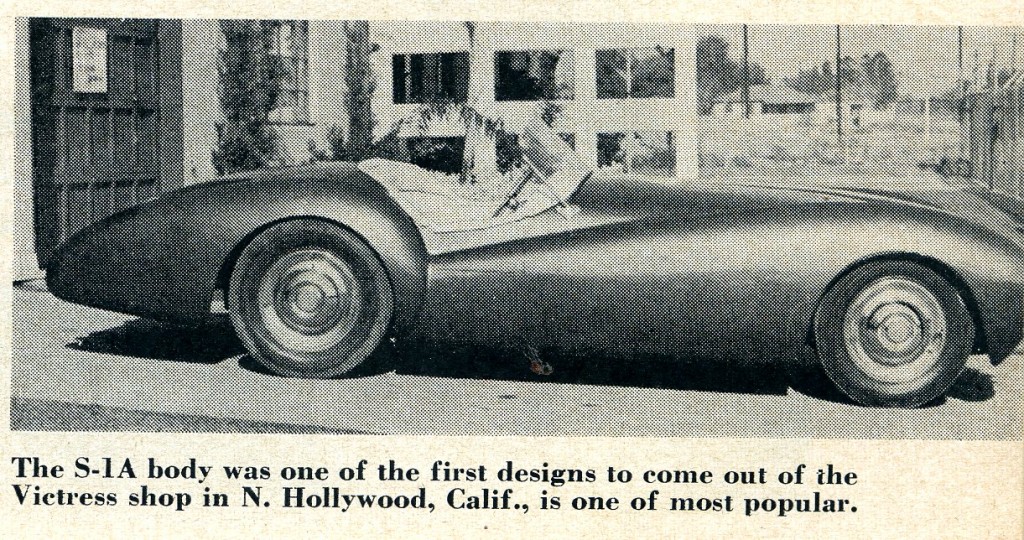 Also of note, the Victress S5 shown on an MG chassis was the one built by Art Evans and raced one or two times before being retired (body retired – not car). More about the Art Evans Victress S5 in future stories here on Forgotten Fiberglass. The Victress S1A shown is the one built by Grant McCoon and called the “Bronze Bomber.” It’s shown in color on the front of this magazine.