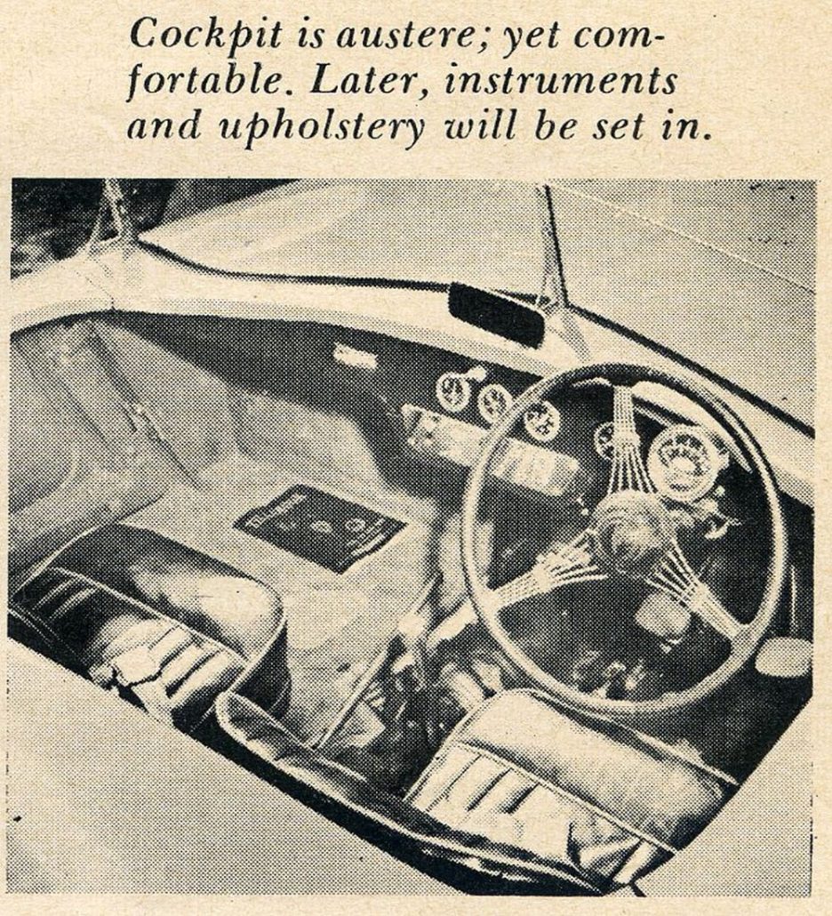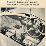 The cockpit was finished with “Zolotone”, a finish used extensively in fibreglass boats. Upholstery was to be added later. A pair of Ford “Angelia” front seats were reupholstered and secured to the floor. Though austere and functional, the “office” was comfortable.