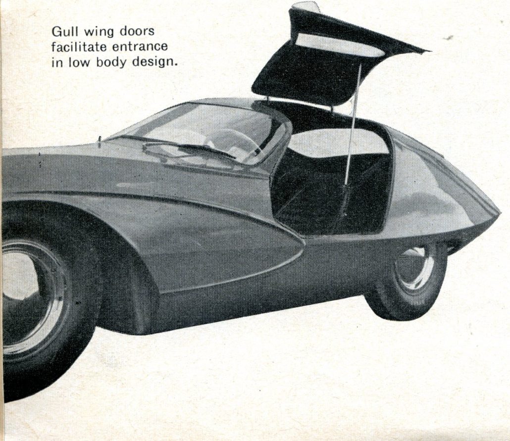 A number of people wrote, expressing definite interest in attempting the project, and the series of articles actually did trigger three dedicated Southern California enthusiasts into action. Marvin Horton, an electronics technician for a ram-jet manufacturing corporation, father of three, and a solidly qualified amateur sports car engineer, had long had dreams of an ideal sports competition car that was far from anything offered by current manufacturers. Although his chassis concept differed somewhat from Bond’s, he felt that the general body envelope suited his purpose very well, an opinion shared by friend and electronics co-worker Ed Monegan, whose long experience in high-speed boat building was to provide invaluable.