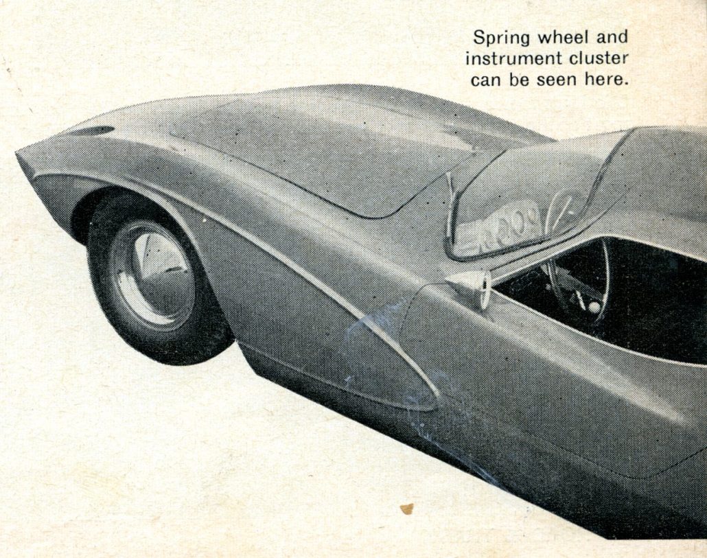Johnson has since built an entirely new chassis for his car, using the original Chevrolet engine, but an all-independent wishbone suspension with coil springs, and disc brakes, all of which should be covered by a revised version of the original body by mid-summer.