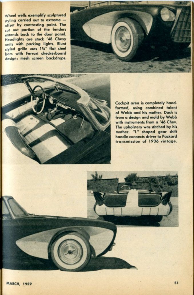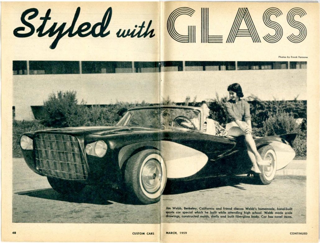 “Voted a gold trophy for “contributing most to the automotive industry” was James Webb, 17, a Berkeley High School senior…who exhibited a fiberglass sports roadster which he made completely himself from the original mold.”