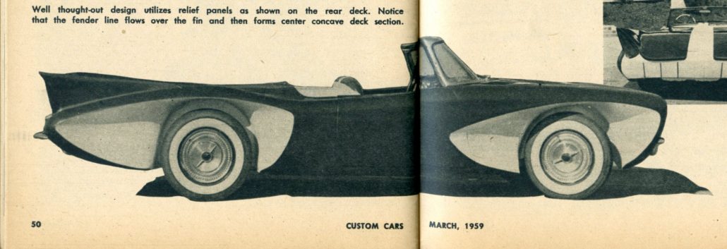In any event, Jim Webb produced a great fiberglass sports car. In the coming months, I’ll run several stories on what we know about the Savage. To introduce you to Jim and his car, let’s take a look at two articles today – one from “Custom Cars” and another in a Fawcett Book Titled “Griffith Borgeson on Hot Rods.” Both are from 1959.