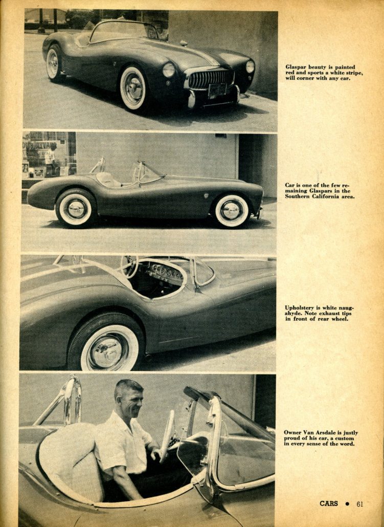 This car cannot be classed literally as a true classic, but it is one in its own right. One of the original Glasspar products, this car was built in 1953-1954 and is now owned by Ted Van Arsdale, a Whittier, California businessman.