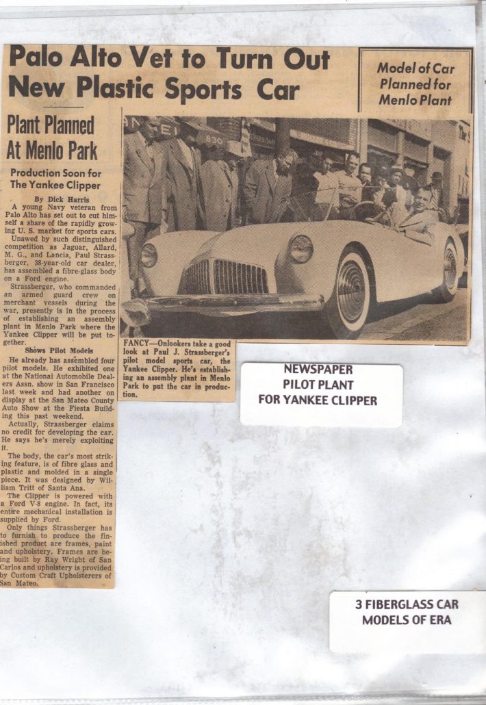- Caption Of Photo In Newspaper Says: “FANCY – Onlookers Take A Good Look At Paul J. Strassberger’s Pilot Model Sports Car, The Yankee Clipper. He’s Establishing An Assembly Plant In Menlo Park (near San Francisco) To Put The Car In Production.”