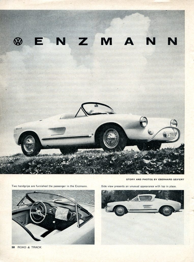 Since sports cars and cars with that sporting look enjoy international popularity, we would like to tell briefly how one goes about obtaining an Enzmann. The VW factories sell chassis only to Karmann, which builds only the coupe and the convertible, so you cannot buy a chassis.