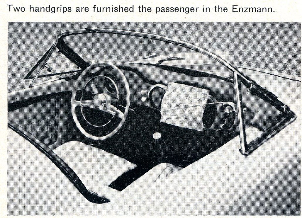 But for the man who craves more horsepower, Enzmann offers either the MAG-supercharger kit, which costs $183, or the Okrasa kit with two downdraft carburetors at $300. By using these kits one can raise the standard 36 bhp to 42 (supercharged) or to 45 bhp with the Okrasa kit. These are options which enhance the fun of driving, but also slim down the pocketbook.