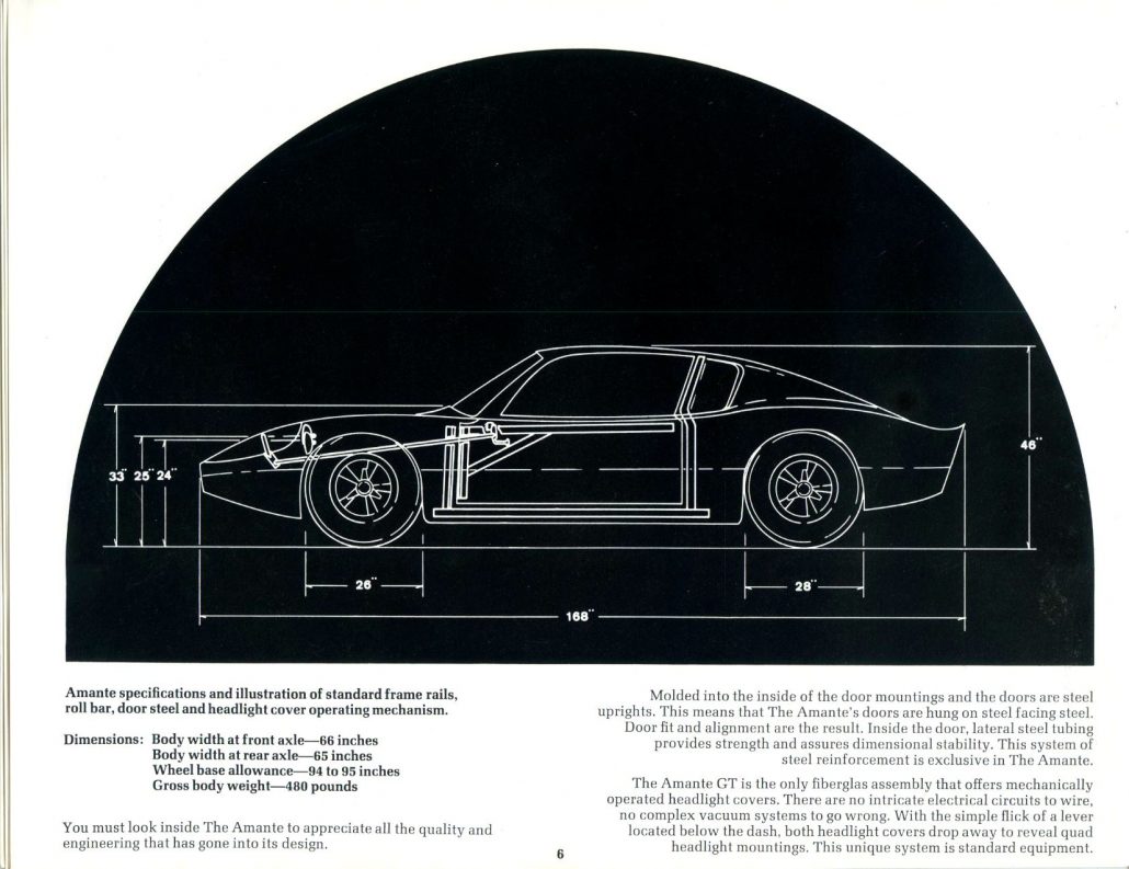 The other contributor is Harold Pace. Harold is the de facto kit car historian for the ‘60s and ‘70s and the following discussion of the Amante GT comes directly from his book, “The Big Guide To Kit and Specialty Cars.” Let’s take a look at what Harold had to say about the Amante GT.