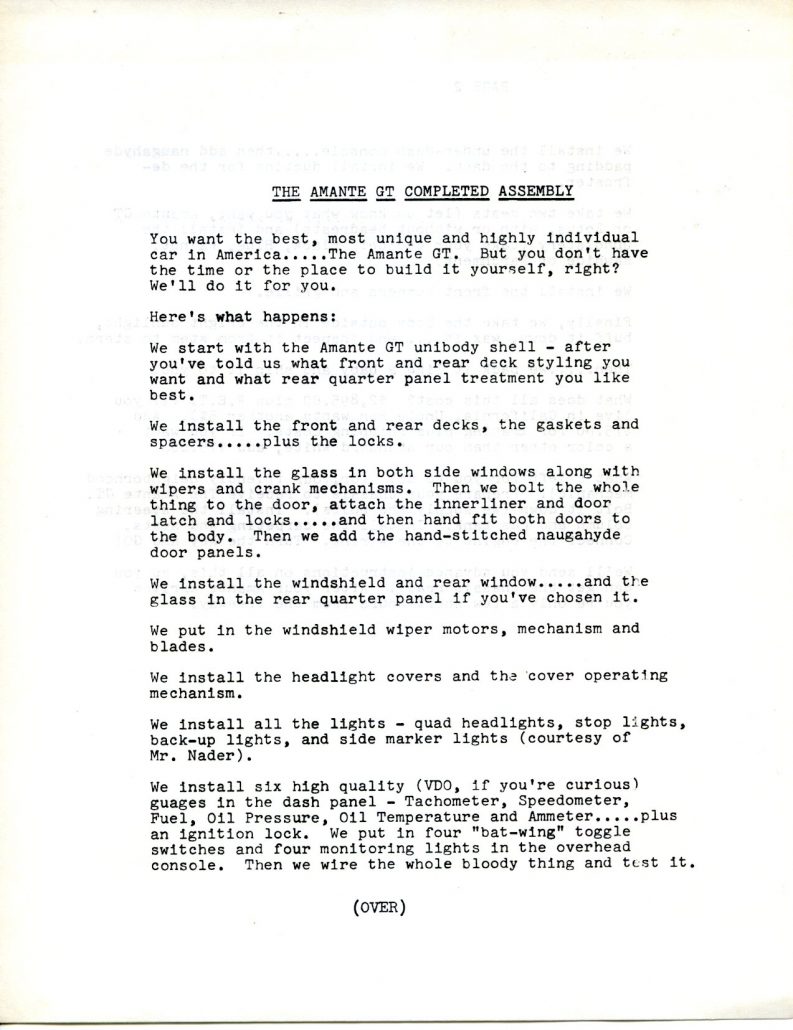Amante GT 1969 Paperwork – Appended To Brochure: