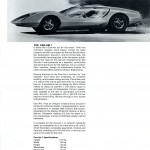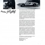 11. The car is incredibly neat, many questions need answering, was this in fact an ABS Cycaloy body or was it in fact a fiberglass plug one off. If tooling was in place to make the first car, it begs the question why only make one set of parts? So if it was production tooling and sonic welded construction, I can not believe that there was not more than one body made, as you would want to test your production techniques to make sure they really worked before going out and soliciting dealer/ builders… What sort of chassis does the car have, that Corvair suspension had to attach to something. Did they have fixtures for producing the chassis? And what of that V-8 car? Surely if your going to advertise that your coming out with one, there would be some development. Neat design, wonder if that was a prototype plastic windshield or if they had tooling already made up for glass? IS there any one out there from Marbon Chemical that knows or remembers? Clearly the car was shown, wonder how many times. Sure be fun to know more about this one… Cool stuff…