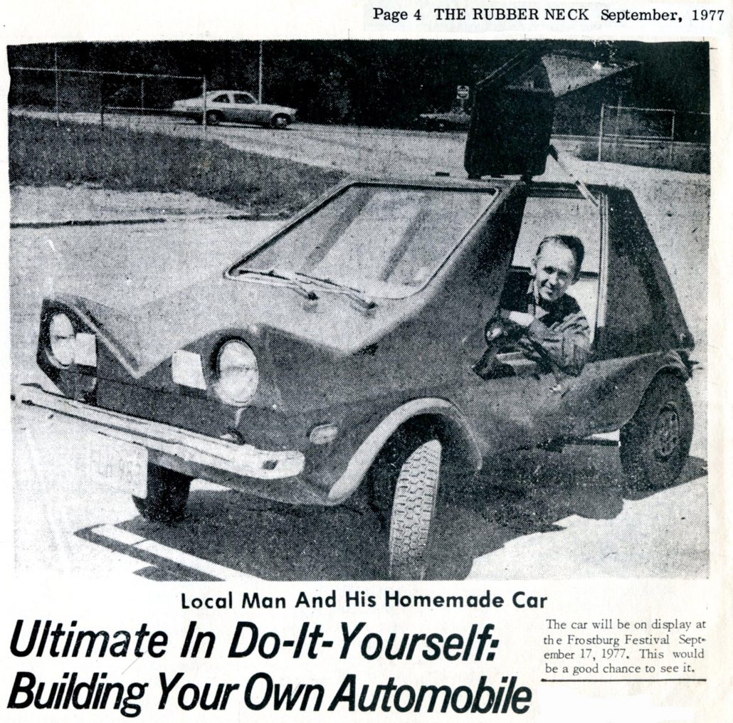 Building one’s own car from scratch is a difficult job in itself, but the builder then must convince everyone that he did build it, especially the Maryland Department of Motor Vehicles. This was the case of a South Cumberland man who constructed his own small, two-passenger automobile, and then found out he had to haul it to the DMV in Glen Burnie for inspection before it could be titled and licensed.