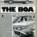 It’s not a kit car and it is expensive. What is it? It’s the Boa! The latest luxury sports car to become available on the American market, and it’s made here in California and is available now. It is not some pipe dream of an automobile designer nor is it some replica of a bygone car. What it really is, is an honest attempt at producing a modern and unique sports car for the eighties.