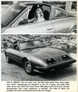 Even though the car is only 47.5 in. high (lower than the Porsche 924 and Datsun 280Z) people up to 6 ft 4-in. in height will find the car comfortable, mainly because David Saunders is over 6 ft. in height and he wanted to make sure he would be comfortable driving his own car!
