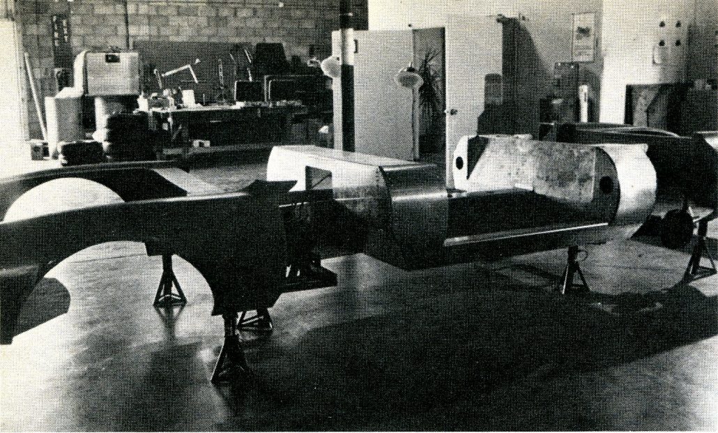 Essentially the structure is made up of box sections, front and rear, that support the suspension attachment points with a center section made up of a floor with a large “transmission” tunnel, door sills and a rollcage all built together to form a rigid structure.