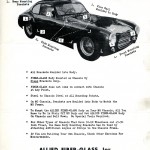 All of these materials use the name “Allied Fiber-Glass Incorporated,” and none use the name “Atlas Fiber Glass.” In our research, we still see the name “Atlas Fiber Glass” being used as late as February, 1953 (Road & Track Magazine). It’s possible that all sales sheets were produced after this time, and so far all materials we’ve found are dated from late ’53 forward.