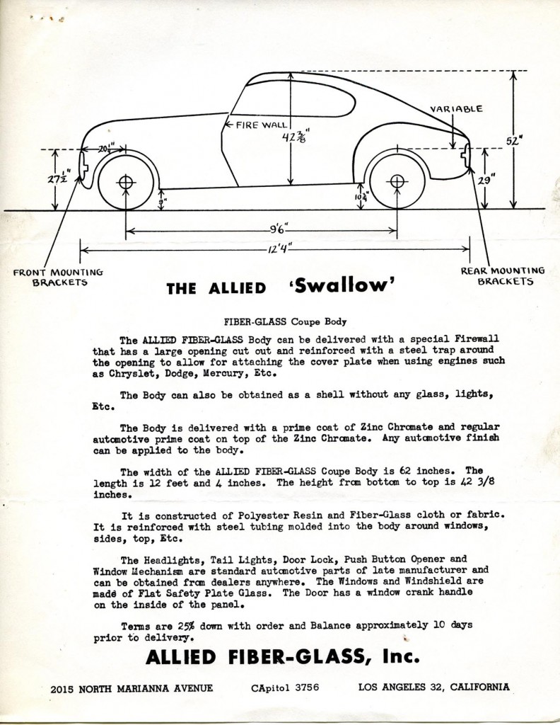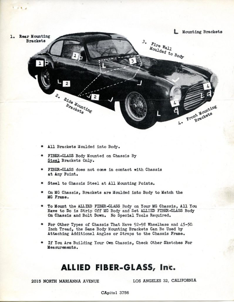 These 4 pieces of paper were all you got in terms of instruction when you purchased your Allied fiberglass body. But that’s not a bad start for the guys of the ‘50s – I’m sure they were off and running with their “build” as fast as they could go.