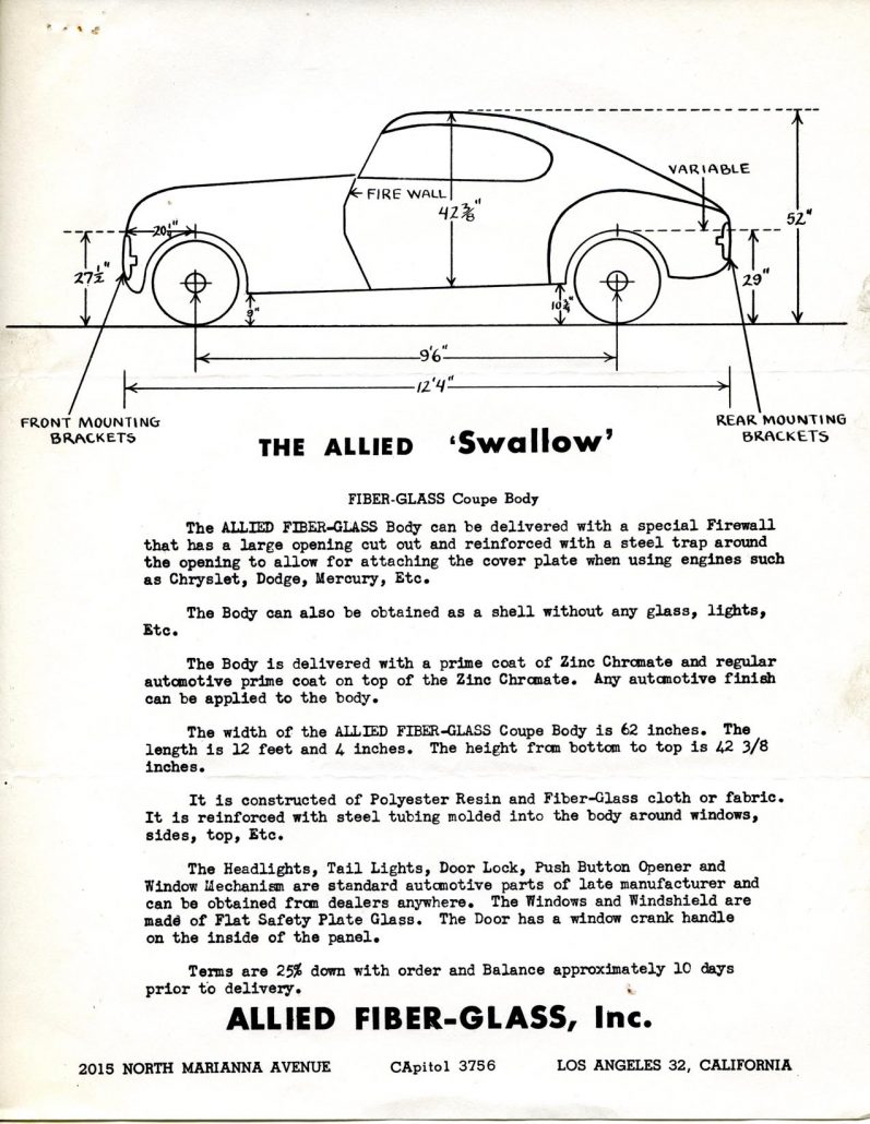 While their early materials did not showcase their 100” wheelbase car, that would change in the near future – as you’ll see in future stories on Allied here at Forgotten Fiberglass.