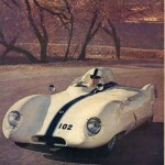 Late entries in the 1957 race include a 5 to 6 passenger car to be known as the “Flintridge DKW Darrin Mark II Sports.” Whether a sports car or not (and we say not) Howard Darrin has come up with an interesting styling treatment with a clever new grille featuring the famous 4-ring Auto Union emblem. (Spoilied, however, by the two fog lights). The all-steel body wil be made in Los Angeles and it has a removable hard top.