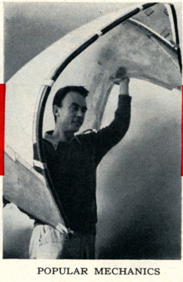 There are pictures of Ken Brooks and his car in Popular Mechanics June 1952, and Popular Science March 1952, and I’ve attached some close-ups of Ken in this article too.