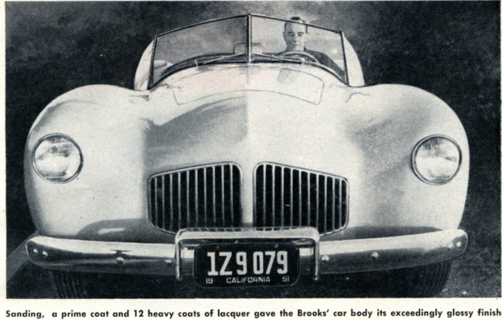 From interviews and articles, Ken Brooks started working on creating his sports car in 1949 or 1950 – before Bill Tritt got involved. Here’s our research on the initial build year (when it was started) based on interviews with Bill Tritt and articles from that period: