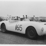 Pop finished his car in 1958. In final form it used a 265 Chevy V8 from a station wagon, bored to 283 CI. It had fuelie heads and pistons, Duntov 30-30 cam and 3, 2bbl Rochester carbs on an Offenhauser manifold. Unable to get his hands on a Chevy 4-speed, he made an adaptor plate, used a Jaguar Moss box and a Plymouth positraction differential. He fabricated his own coil spring setup in the rear with a watts link. It had Plymouth drum brakes with ceremetallic lining on all four wheels.