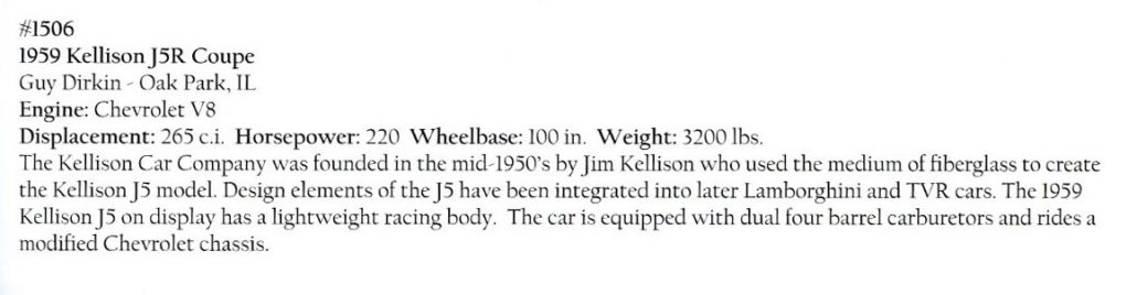 Geoff, In 1967 I raced against a Kellison bodied car. As I recall it was on a Chev frame. It was owned by Jerry Lagod from DesPlaines Ill. I have a picture of it on the race track. I wonder if it is the same car???
