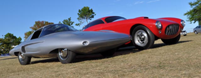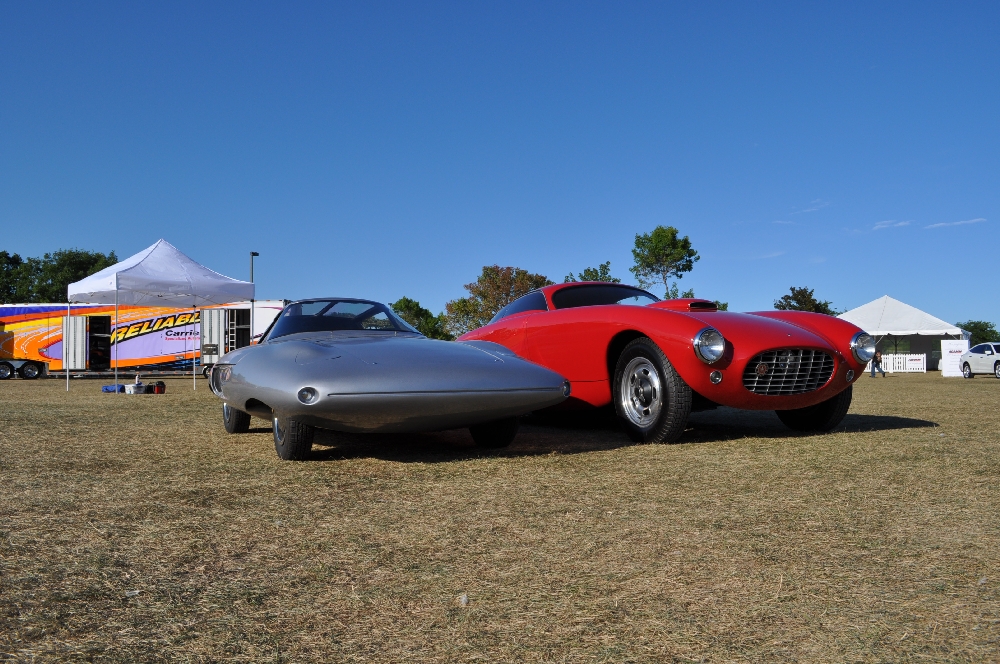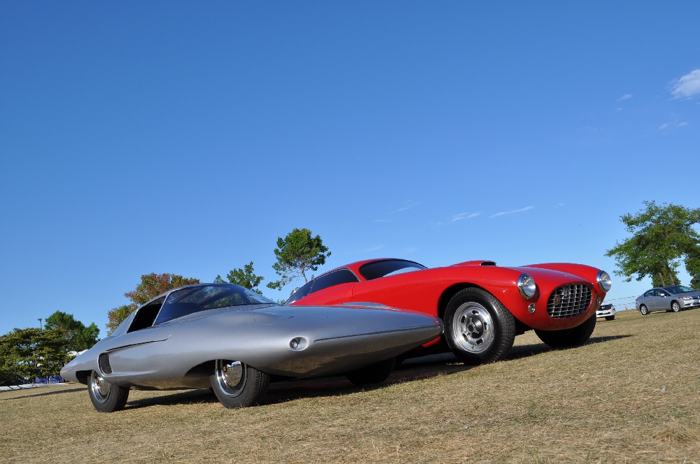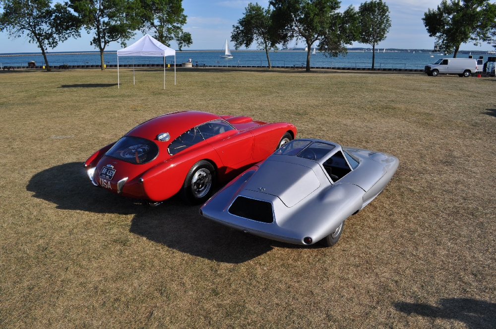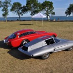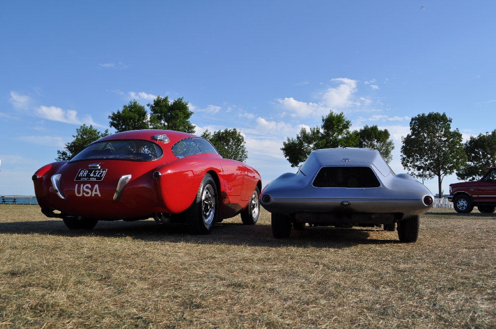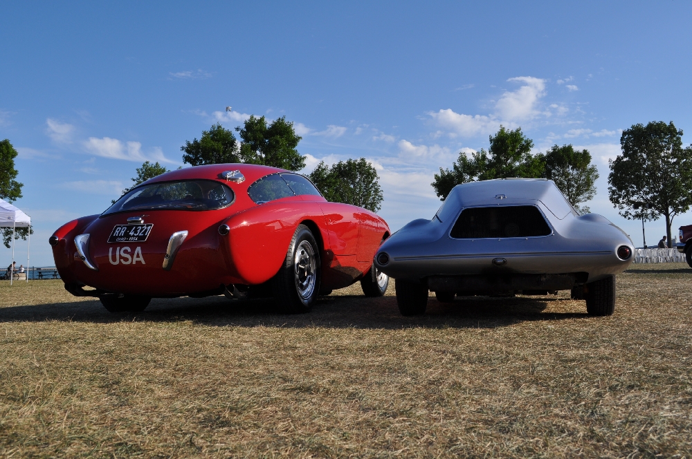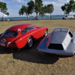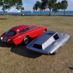 Late Sunday, at the end of the Milwaukee Masterpiece Concours d’ Elegance, Tom Kenney of the Petersen Automotive Museum, allowed our group to take some stunning pictures pairing the Bosley GT Mark 1 with other cars. Today’s pairing shows the “Covington Tiburon” with the “Bosley GT Mark I.” This is an important pair of cars to show given their drastically different approach to styling and speed. The juxtaposition of these cars makes for some great visuals – thanks to the talents of my good photographic friend, Rick D’Louhy.