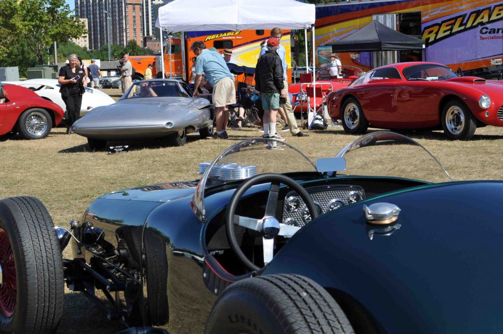 Late Sunday, at the end of the Milwaukee Masterpiece Concours d’ Elegance, Tom Kenney of the Petersen Automotive Museum, allowed our group to take some stunning pictures pairing the Bosley GT Mark 1 with other cars.