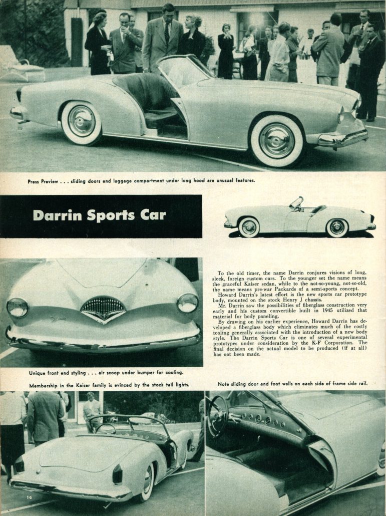 To the old timer, the name Darrin conjures visions of long, sleek, foreign custom cars. To the younger set, the name means the graceful Kaiser sedan, while to the not-so-young, not-so-old, the name means pre-war Packards of a semi-sports concept.