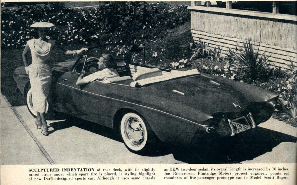 Geoff, as we have previously discussed, we at Victress may have put the bug in Flintridges’ ear, about a fiberglass-bodied DKW, before Darrin came into the picture. After we completed the C-2 coupe we explored the idea of partnering with an import dealer to produce a complete car. We talked with both Flintridge about a DKW-based C-2, and with the Citroen dealer in Beverly Hills, about a 2CV-based version. Nothing came of either “exploration”, probably because Victress was really a shoe-string operation.