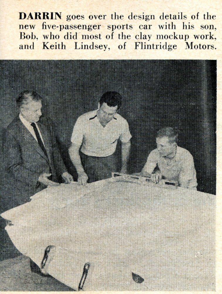 Darrin, not one to turn down anything that had even remote possibilities, especially when such a project showed signs of financial support, immediately began work on a one-fourth scale clay model. With the assistance of Bob Darrin, his son who has taken a liking for things automotive, Dutch came up with a new body design which utilized the old body’s basic dimensions, for the most part.